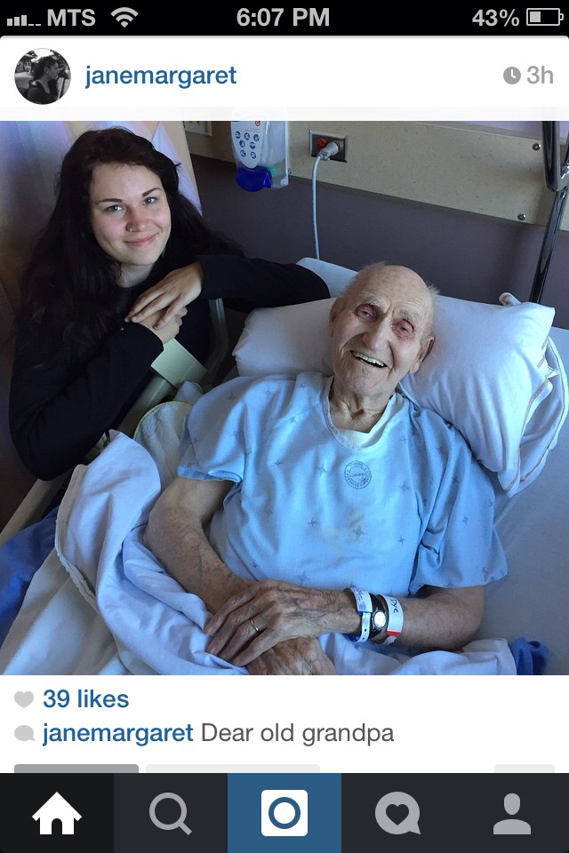Room 101 became a gift to us. Cramped in with little privacy, we soon came to know dad's roomies. Big Guy to the west liked cheezies, and his gown was sometimes vaguely orange. His wife was devoted and spent every day with him. We fell in love with her as well. When the days came that his breathing shallowed and slowed, we felt his wife's loss keenly. At the funeral it was sweet to "see" him in his younger years, full of fun and energy for his grandchildren.
